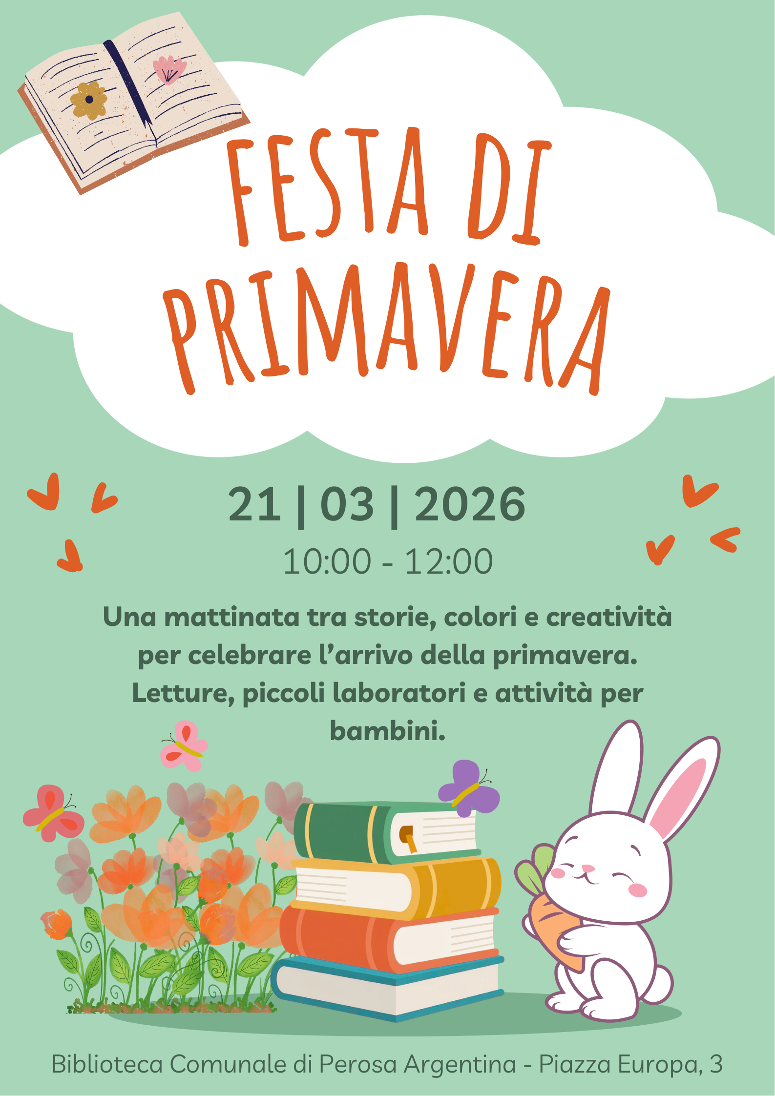 Sabato 21 marzo 2026, dalle 10.00 alle 12.00, la Biblioteca Comunale di Perosa Argentina ospiterà la Festa di Primavera, un appuntamento dedicato ai più piccoli per celebrare insieme l’arrivo della nuova stagione.